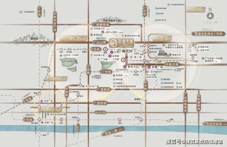 中铁建·信达花语天宸位于广州黄埔区黄陂板块,处于天河智慧城和黄埔科学城双城交汇之地,是广州第三发展中轴线“科技创新轴”上的重要节点。天河智慧城定位为“广州硅谷”,已有2500家企业进驻,如网易总部、酷狗等;黄埔科学城则是广深科技创新走廊重要“创新极”,战略性新兴产业产值占全市50%以上。项目所在区域发展前景广阔,大量的产业和人才聚集,将为业主提供稳定的就业和生活环境。