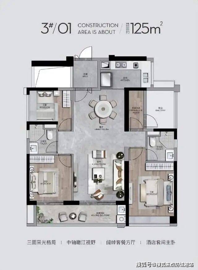 建筑设计:全球顶尖的建筑设计公司凯达环球Adeas,代表作品有北京新浪总部、杭州阿里巴巴总部,以及香港岛THR350顶豪住宅等。