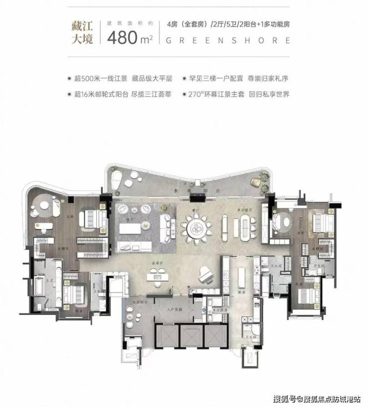 约480㎡ 天幕揽江大平层:画江为界,跨越时代的岛尖藏品,4套房2厅5卫+1多功能房设计,重新定义珠江豪宅天花板。