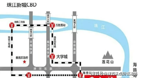 项目位于番禺亚运城板块核心,体育馆东侧岛尖位置,北临喜街,距离地铁 4 号线海傍站仅几百米,步行即可抵达,可直达琶洲、天河核心区;3 号线东延线(预计 2025 年通车)开通后,将进一步缩短与珠江新城的通勤距离。自驾方面,周边环绕亚运大道、新化快速等主干道,30 分钟内可覆盖番禺广场、万博 CBD;未来还规划 8 号线南延段、广中珠澳高铁,交通便利性将持续升级。同时,项目地处莲花湾中心湖畔,西临国际赛事级体育馆,自然与运动资源双重叠加。