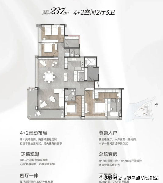 户型设计:180-237㎡大平层,专梯入户享私密