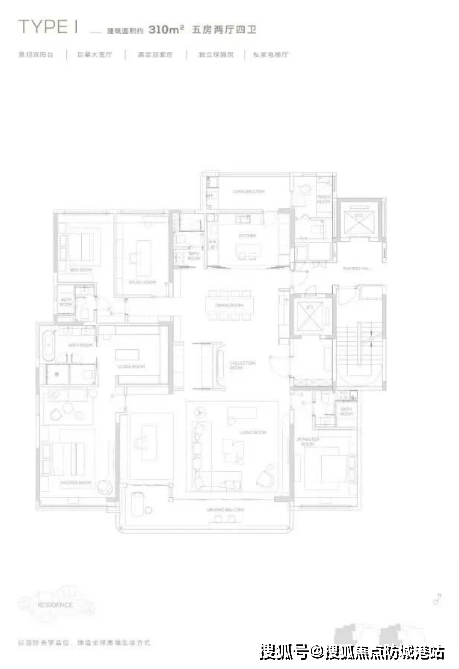 315㎡户型:南北双阳台、独立保姆房、巨幕大宽厅以及私家电梯厅,空间尺度奢华,为追求极致居住体验的高端客户量身打造。