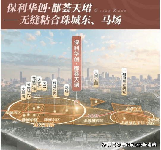 地段,是豪宅的核心价值底色。保利华创·都荟天珺坐落于珠城东,马场旁,与珠城东区仅隔一条马路,处于华南快速和黄埔大道交汇处,地理位置得天独厚。从项目出发,西侧一路之隔便是珠江新城东区,东侧紧邻金融城核心区,往南与琶洲西区隔珠江相望,形成了“琶金珠”黄金三角核心区位,享受三大核心商务区的产业与资源辐射。
