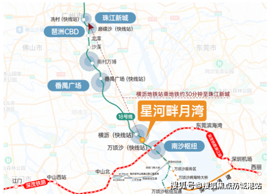 地铁出行同样便捷,业主楼巴已正式运营,可直接接驳地铁18号线横沥站,该线路时速达160km/h,快线4站即可直达珠江新城,大幅缩短与市中心的通勤时间。此外,项目距离南沙枢纽站约5公里,该站点规划规模超广州南站,设14台29线,计划2028年3月全面运营,未来接入深江铁路、广中珠澳高铁等线路,2站即可到达深圳机场东站。