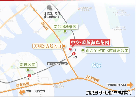 地铁18号线南延线二十涌站:步行500米即达,2026年开通后4站直达广州珠江新城,1站接驳中山翠亨新区;