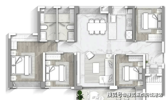 105 平户型则借鉴了长隆万博悦府 125 平及万博城 188 平户型的优势,在缩小面积的同时保留了舒适的空间尺度,客厅、卧室的布局方正合理,通风采光俱佳,让每一寸空间都得到高效利用。这种高使用率的户型设计,打破了传统住宅空间浪费的痛点,让业主以更具性价比的方式享受宽敞舒适的居住环境,真正实现 “小面积,大享受” 的舒居愿景。