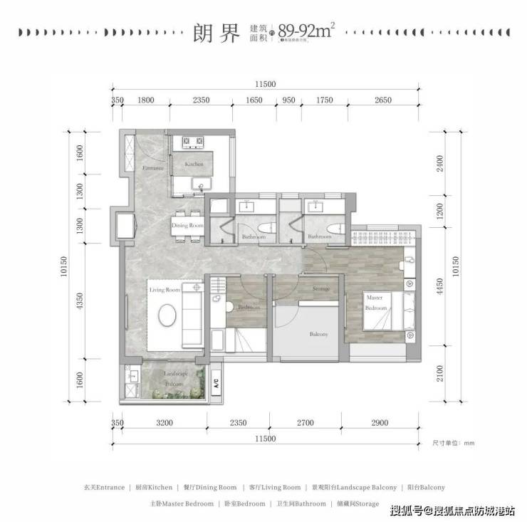 万科朗庭主打80-128㎡的两至四房户型,得房率高达93%-96%,采用LDK一体化设计,强调空间灵活性和家庭互动性。主卧套房配备独立卫浴和宽敞飘窗,提升了居住舒适度。