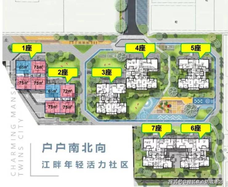 两梯四户低密度设计,户型均为65-75方的对流型三房,得房率高达90%。