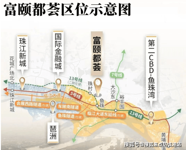 富颐都荟地处“珠-金-琶-鱼”珠江黄金8公里范围内,位于广州第二CBD,这里有望成为下一个珠江新城。该区域占地面积达59平方公里,相当于10个珠江新城,由国际金融城、临港经济区、琶洲形成黄金三角区,是广州发展前景最为广阔的区域之一。此外,项目周边还有中科院空天信息研究院、鱼珠智创绿谷等高新产业带,未来将汇聚大量资金和人才,具有无限的物业增值潜力。