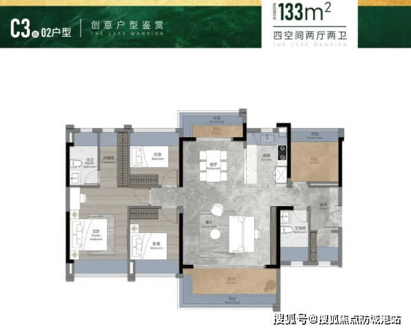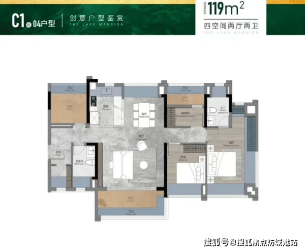 115-119㎡大四房:奢阔客厅+双阳台配置,湖景视野极佳,42X万-45X万;