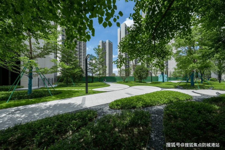 社区内部采用围合式布局,打造了约 2 万㎡中央园林,绿化率高达 35%,相当于 3 个标准足球场大小,种植了香樟、凤凰木、木棉等多种名贵乡土树种与花卉,四季有景可赏。园林内规划了全龄段休闲空间:阳光草坪适合野餐、遛娃;儿童活动区配备了滑梯、秋千等设施,让孩子尽情释放天性;康养跑道环绕园林,为业主提供安全的运动环境;还有露天游泳池、健身区、棋牌室等配套,满足不同年龄段业主的休闲需求。