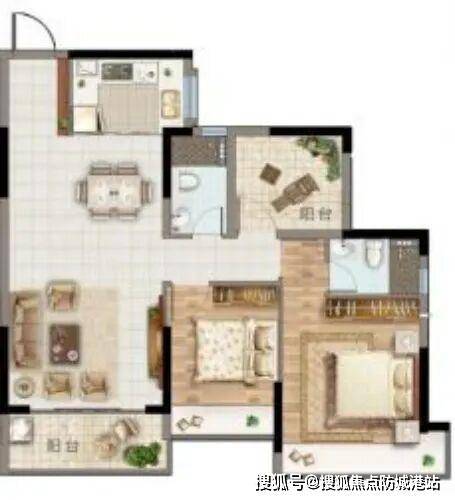 厨房紧邻餐厅,操作便捷,“U” 型设计让操作台面更加宽敞,橱柜收纳空间丰富,方便存放各类厨房用品。主卧空间宽敞,配备衣柜,能满足衣物收纳需求,还带有飘窗,增加了采光与空间感,提升了居住舒适度。次卧面积适中,可根据需求布置成儿童房或书房,满足不同生活场景。卫生间干湿分离,保证了日常使用的便利性与卫生。整体户型动静分区合理,休息区与活动区互不干扰,是追求舒适居住体验的小家庭的理想选择。