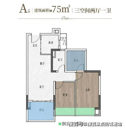 ▌75㎡灵动三房:新规魔法实现零公摊,主卧飘窗延展为茶室书房