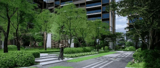 围合式园林布局:中心会客花园+全龄架空层重构邻里温情