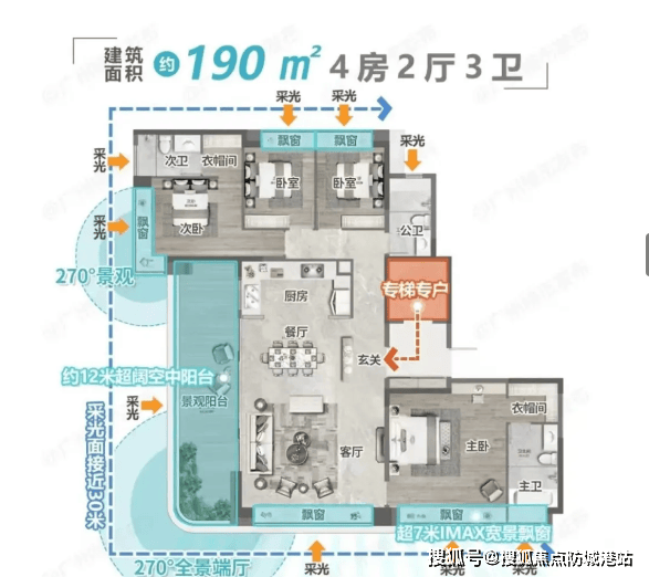 项目一期产品以建面约 160-184-190-230-300㎡的大平层为主,二期则推出建面约 268-280㎡的准独栋别墅,覆盖了改善型购房者的不同需求。在使用率方面,项目表现尤为亮眼,使用率高达 97%-100%,几乎没有面积浪费,让业主的购房成本得到最大化利用。