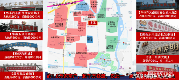 企业——周边1公里内7家专业市场,粤丰汽车配件批发市场,华南五金电器城,快捷汽配城,敦厚批发市场,华南气动液压五金机电