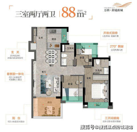户型涵盖93㎡三房两卫。