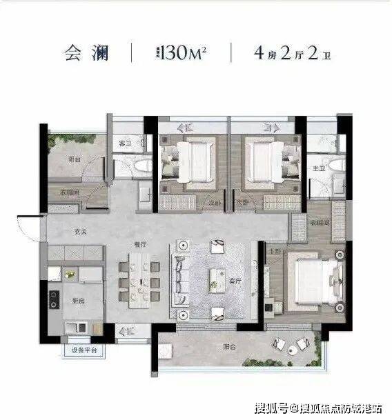 主力产品为建面约116㎡三房与130㎡四房,两个户型均采用“全南向+动静分区”布局。以130㎡四房为例,主卧带独立卫浴与L型飘窗,次卧与书房共享北侧采光面,客厅连接6.4米宽阳台,形成完整的家庭公共活动区。值得注意的是,该户型得房率接近80%,在同区域产品中表现突出。116㎡三房则通过压缩公区面积,确保三个卧室均具备实用尺度,最小卧室开间达2.9米,可满足儿童房或老人房的基本功能需求。样板间展示中未做过多非标改造,所见即所得程度较高,减少了交付后的落差风险。