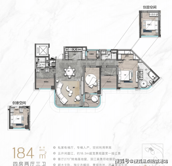 当前加推D栋新品,涵盖建面约109㎡、136㎡三四房,是区域内稀缺的小户型产品,为更多家庭提供低门槛入主白鹅潭滨江生活的机会。楼王产品“璇湾壹号”则主打184-255㎡四至五房大平层,瞰江面宽最高达18.3米,270°环幕视野尽揽珠江盛景,堪称身份与品位的象征。