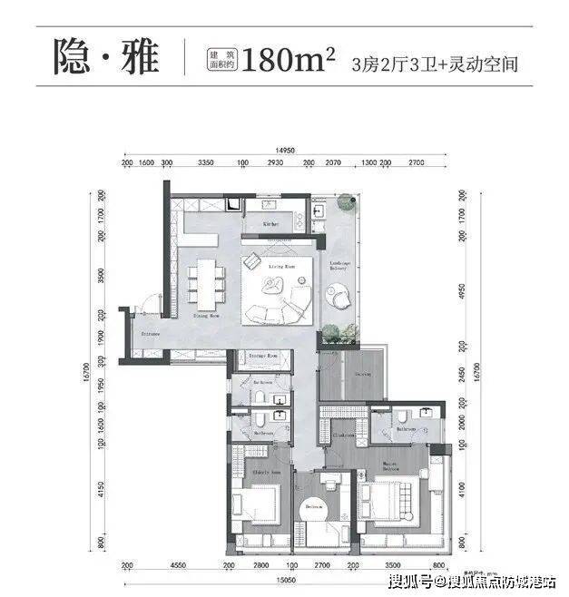 180平的4房户型为东南向,带双主套,这个面积和设计在越秀区新盘中算是比较少见和突出的,卧室是270°景观,视野效果很好,高层能远眺白云山,不过低楼层的由于和隔壁的居民楼挨得比较近,私密性会比较差。