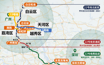 更值得期待的是 22 号线北延段,未来通车后 8 站直达白鹅潭,途经广州火车站、彩虹桥站等枢纽站点,可换乘 1、2、5、8 等多条地铁线路,贯穿全市的交通网络,让通勤族的出行效率大大提升。