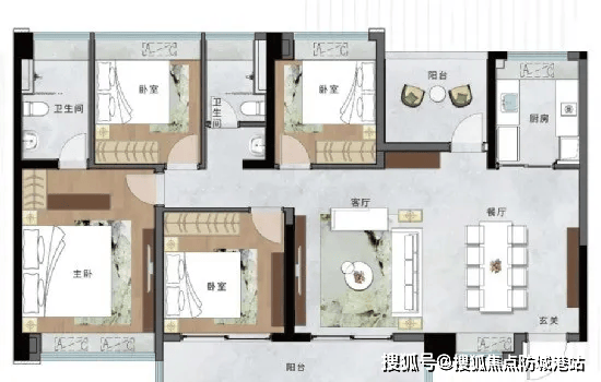 ① 88㎡3+1室2厅2卫(南入户):该户型是横沥岛罕见的小面积四房户型,以超高实用性成为刚需家庭的首选。88㎡做到3+1房带主套,空间布局紧凑合理,无浪费面积,轻松实现“小面积享大四房”的居住体验。南入户设计保证了室内充足的采光与通风,客厅连接观景阳台,延伸空间视野;主卧套房设计,配备独立卫生间,保障业主隐私;额外的灵动空间可根据需求改造为书房、儿童房或储物间,适配家庭不同阶段的居住需求,轻松入住国际金融岛。