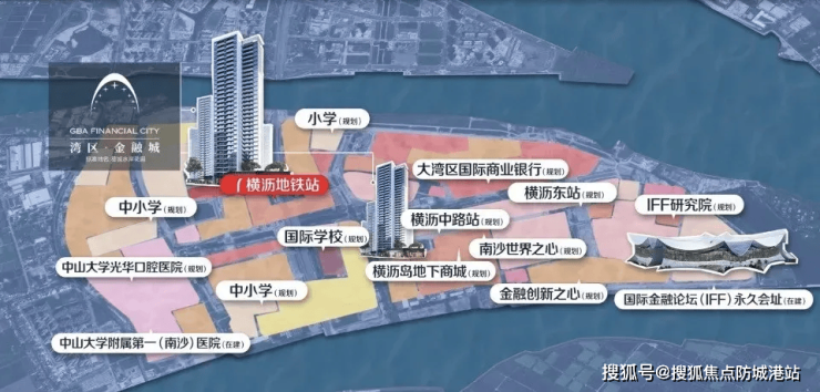 明珠湾板块的横沥岛,作为全国首个国际金融岛,承载着打造大湾区金融核心的重要使命,身上汇聚了众多高端标签:国际金融论坛(IFF)永久会议中心、湾区商业银行、600米湾区地标等,目前正处于大力发展阶段,虽然全面兑现需8-10年周期,但当前已展现出强劲的发展势头。从板块楼市规律来看,横沥岛呈现“越东越贵”的特点,IFF永久会议中心及众多商办项目集中在东部,稀缺江景资源尤其是南向江景,成为板块内楼盘的核心竞争力。