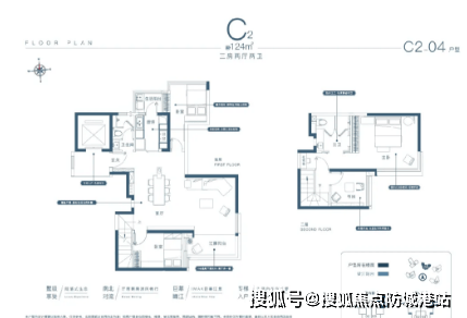 - **124㎡三房两厅两卫(2栋)**:该户型在保证居住空间舒适的同时,注重细节设计。客厅宽敞大气,连接观景阳台,可饱览江景或园林风光。卧室温馨舒适,主卧套房设计,配备独立卫生间,提升居住的私密性与品质感。