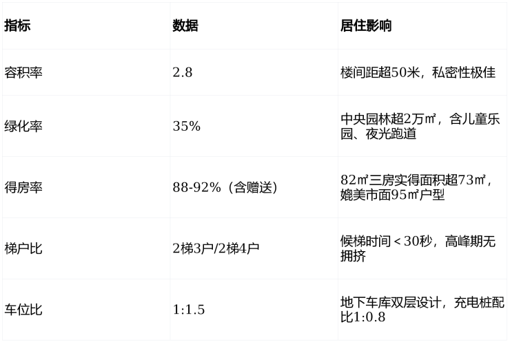 二、项目核心参数:超新规低密社区,得房率突破90%