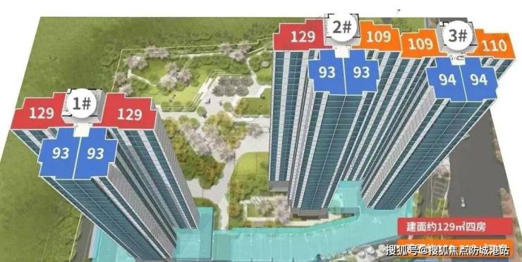 主力户型:建面约 93-95㎡三房、110㎡四房、129㎡四房