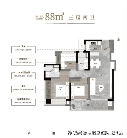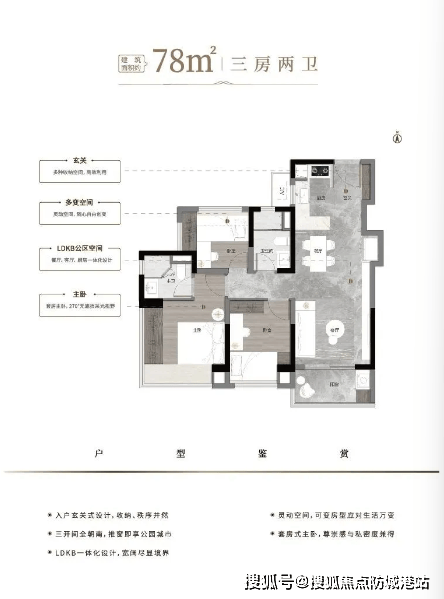 产品设计以“大面宽、短进深、长阳台”为核心理念,保证室内采光与通风。所有户型均为全南向设计,部分户型配备超大阳台和可改造飘窗,得房率超过100%,实用性极强。