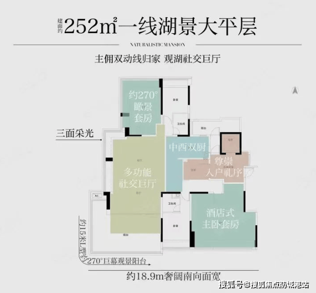 45-52米的低密度小高层,按照“前低后高”的建筑高度控制,形成朝向湖区梯级跌落的设计,大地块西北向望湖景,小地块西向往湖景