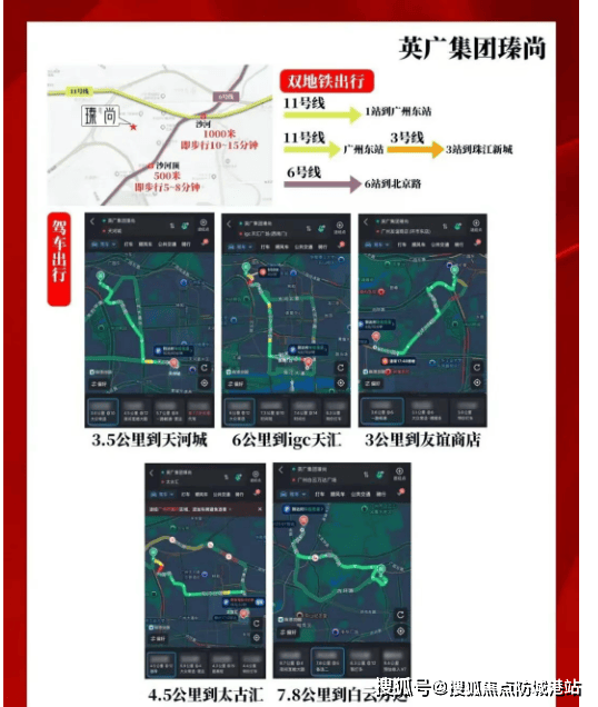 理由三:三地铁交汇,立体交通通达全城。项目紧邻5、6、11三条地铁线路,距离6号线沙河顶站B出口约500米,1站至沙河站换乘广州大环线11号线,2站至区庄站换乘东西大动脉5号线,3站可达淘金,6站直达北京路、珠江新城,一线连通琶洲,同时快速接驳内环路、广园快速路等城市主干道,出行高效便捷。
