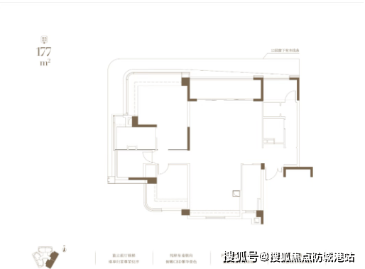 【A户型】约177㎡四房两厅三卫:该户型为项目的高端改善户型,定位为奢阔四房,适合人口较多的改善家庭或追求高品质生活的精英家庭。户型整体布局方正,南北通透,采光通风极佳,客厅采用大面宽设计,搭配全景落地窗,视野开阔,可将社区园林美景尽收眼底;主卧为套间设计,配备独立卫生间、衣帽间,空间宽敞舒适,私密性强,同时配备全景飘窗,闲暇时可俯瞰城市风光,提升居住体验;另外三个卧室均宽敞明亮,其中两个卧室配备飘窗,一个卧室可作为书房或儿童房,灵活多变,满足家庭多元需求;厨房采用U型设计,操作空间充足,动线合理,方便家人烹饪;公共卫生间干湿分离,避免潮湿困扰,提升使用舒适度;整体户型空间利用率高,无浪费面积,奢华感与实用性兼具,彰显高端人居格调。