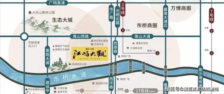 项目北接万博CBD——目前聚集了四海城、万达广场、粤海广场等高端商业与写字楼集群,已成为番禺新的经济引擎;西靠广州南站枢纽商圈,承接大量商务人流;南连南沙自贸区,享受粤港澳大湾区政策红利;东向则通过高速路网快速对接东莞、深圳,区位战略价值日益凸显。
