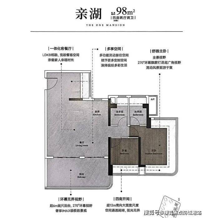 户型设计亮点满满。主推建面约 98 - 148㎡全南向新规奢宅,每个户型都独具特色。98㎡四房两厅两卫,东南向,超 6m 阔尺阳台,270° 环幕视野,四开间朝南。116㎡四房两厅两卫,东南向,奢阔景观阳台超 7m 大开间,南北通透。120㎡四房两厅两卫,东南向,百米楼距园景,环幕景观阳台尺度大。132㎡四房两厅两卫,西南向,超 50㎡超感大方厅,格局大气。148㎡四房两厅两卫,西南向,超 16m 超大尺度观景面,南北双阳台。户型设计注重采光、视野与空间感,满足不同家庭结构对品质生活的追求。