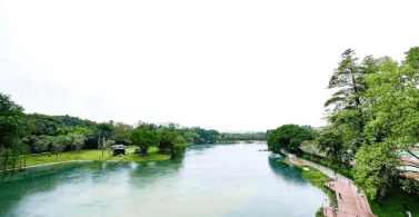 周边景观资源得天独厚,出门即有约 243 万方山湖林海,容积率仅 1.98 ,环绕 14.9 万方公园绿地、5.3 万方日月双湖与 1.9 公里湖岸线。项目三面环山,拥有丰富山水资源,是天河东部重要绿色开敞空间,水系包括太阳湖和月亮湖,周边被钟岭、横岭、大山等自然山体环绕,山湖相依,自然环境优美。