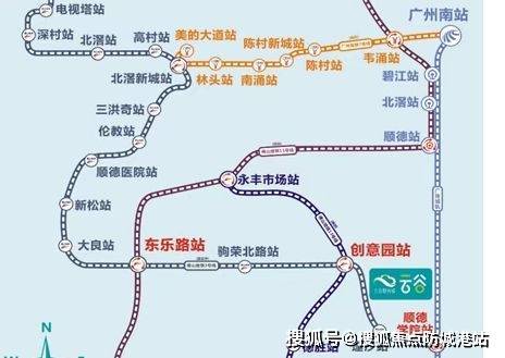广珠城轨双站点(顺德站、顺德学院站),10站可达广州南站。