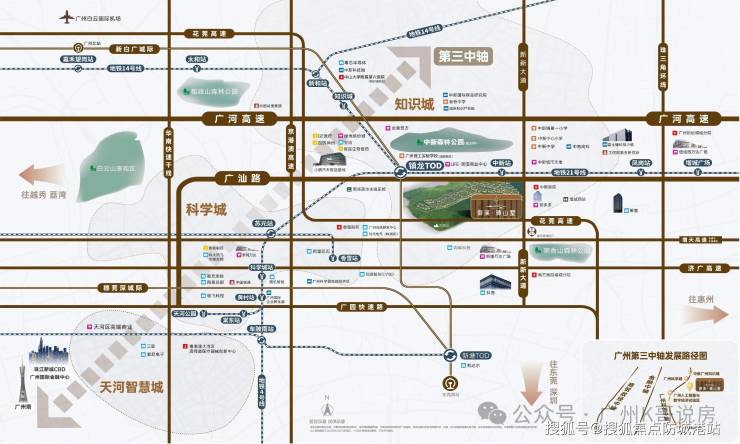 御溪·臻山墅构建了“轨道交通+高快速路+城市主干道”三维一体的交通出行体系,可实现与广州中心城区及湾区核心城市的高效联动。轨道交通方面,项目距离地铁21号线中新站直线距离约100米,步行即可快速抵达站点,地铁21号线作为广州东进的核心轨道交通线路,快线3站即可抵达天河区,同时可在镇龙站换乘地铁14号线,快速通达黄埔、白云等区域;项目距离镇龙TOD枢纽直线距离约1.4公里,在建的新白广城际铁路在此设站,通车后2站可达新塘,3站可达白云国际机场,同时可衔接穗莞深城际铁路,直达深圳宝安国际机场,实现湾区核心城市的快速通达。高快速路网方面,项目周边布局了广河高速、花莞高速、广汕公路、增天高速等核心交通干线,其中增天高速建成通车后,项目到天河珠江新城的车程将大幅缩短,可快速融入广州半小时中心城区生活圈。公共交通方面,项目1公里范围内布局了中新地铁站、农工商站等多个公交站点,覆盖增城11路、35路、36路、51路等十余条公交线路,可通达增城全域及黄埔相邻区域,全面满足业主日常通勤、商务出行、休闲出游等多元出行需求,同时交通路网的持续完善,也进一步提升了板块的通达性与居住便利性。
