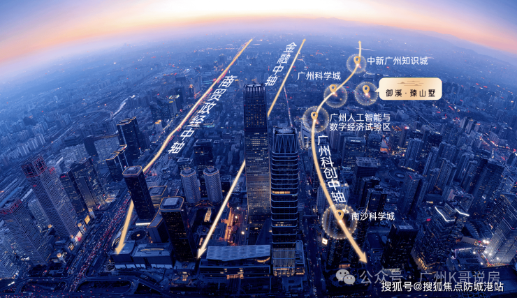 御溪·臻山墅坐落于广州第三中轴北起点,中新广州知识城与广州科教城双板块交汇的核心区域,具体位于广州市增城区中新镇风光路399号,处于广州东进战略的重要发展节点上。中新板块作为广深科技创新走廊的关键节点,承接了广州天河、黄埔核心区域的产业与居住外溢需求,同时依托国家级双边合作项目中新广州知识城的发展红利,板块价值持续稳步提升。截至目前,中新广州知识城累计注册企业超2万家,注册资本规模超6000亿元,持续导入高端产业资源与高素质居住人口,为板块带来了长期稳定的居住需求与价值支撑。项目所处的中新镇板块,是广州东进战略中重点打造的宜居生活片区,周边聚集了多个成熟居住组团,居住氛围与城市配套持续完善。在广州中心城区住宅用地供应持续收紧的市场环境下,板块内低密住宅用地供应稀缺,项目作为区域内少有的纯墅区产品,在区位价值与产品形态上形成了差异化优势,同时依托便捷的轨道交通网络,实现与广州中心城区的高效联动,在广州城市发展格局中占据了稳定的价值站位,为自住与置业需求提供了坚实的价值基础。