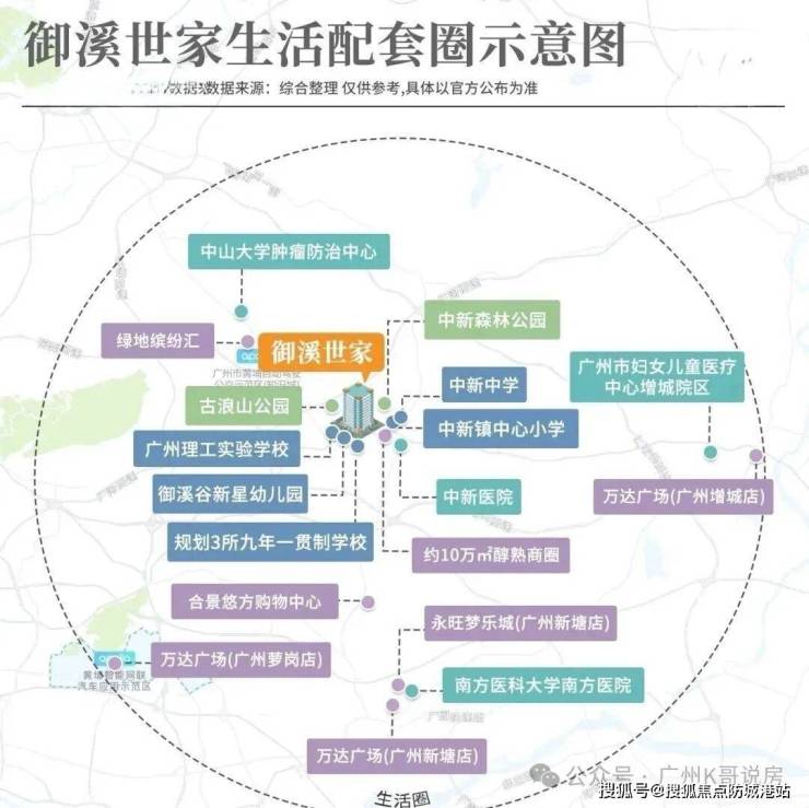 教育配套方面,项目3公里范围内布局有23所幼儿园及中小学,覆盖从学前教育到高中的全龄段教育需求,其中包含中新镇中心小学、中新中学、广州知识城第一小学等公办教育资源,可充分满足业主子女的日常就学需求,近距离的教育配套大幅降低了日常接送的时间成本。商业配套方面,项目1公里范围内有已运营的御溪谷商业中心,以及在建的中新城市新天地,3公里范围内有绿地缤纷城、合景悠方等集中商业体,10公里范围内可通达萝岗万达广场、增城万达广场,可全面满足日常购物、餐饮、休闲、娱乐等各类消费需求。地铁配套方面,项目距离地铁21号线中新站直线距离约100米,步行即可抵达,21号线快线3站可抵达天河区,同时可在镇龙站换乘地铁14号线,快速通达黄埔、白云区域;距离镇龙TOD枢纽约1.4公里,可衔接在建新白广城际,快速通达白云机场与深圳方向。除此之外,项目周边还有完善的医疗配套与市政配套,全方位满足日常居住的各类需求。