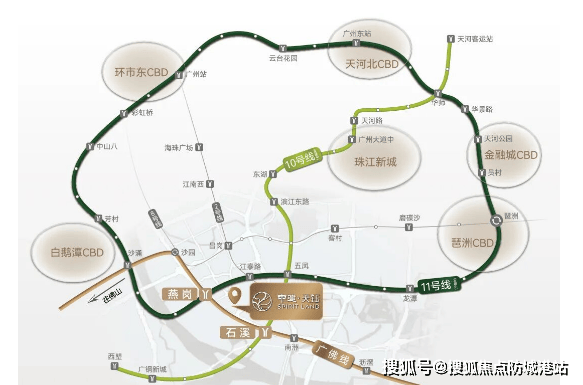 地段的价值在于连接城市的效率,中建·天钰占据了海珠西极具潜力的黄金节点。项目地处新滘豪宅大道的起点,这里是连接琶洲数字经济区与海珠西成熟生活区的关键纽带。从区位上看,项目距离琶洲核心区仅需约20分钟车程,能够同频享受千万级豪宅区的产业红利与价值辐射。更令人振奋的是其便捷的交通网络,项目坐拥“双地铁”加持,步行约750米可达石溪站,约900米可达燕岗站。这两座站点汇聚了广佛线、10号线(在建)及11号线(环线)三条轨道交通动脉。通过这三条线路,居民仅需4站即可到达上涌,8站直达琶洲,9站便可贯通天河CBD。这种“家门口即地铁”的便利,不仅极大地缩短了通勤时间,更让业主能够轻松畅达广州全城。虽然项目临近工业大道与新滘西路交汇处,车流较为密集,但得益于地块整体抬高约7-9米的“城市浮岛”设计,以及约35米的退距,有效隔绝了地面的喧嚣,营造出闹中取静的居住环境。