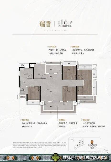 得房率125%:通过“无梁化”设计、飘窗全赠送,实际使用面积达175㎡,媲美市面160㎡户型。