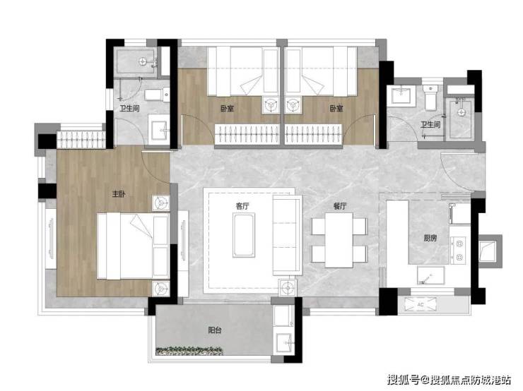 78㎡三房两厅两卫,全新升级三房,四开间朝南,超11米南向采光面,270度超大角度采光,直望广阔园景。