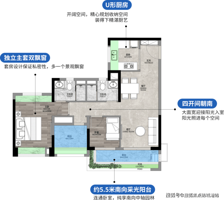 82㎡三房两卫,小户横厅重出江湖,片区内绝版横厅小户强势补货。南北对流,四开间超11米采光,270度超大角度采光,海园双景皆可拥有。
