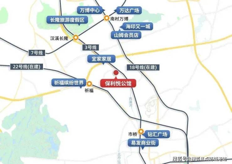目前已有3号线汉溪长隆站和22号线祈福站(距离项目800米),同时附近的番禺广场可以换乘18号线,方便到达海珠和天河地区。