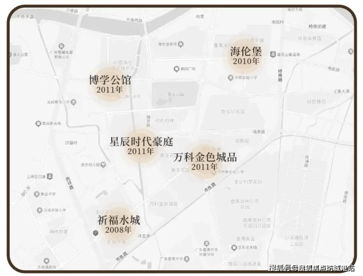 现有配套:项目1公里内覆盖沙湾文化广场、荔园新天地商圈,步行10分钟可达沙湾古镇(4A级景区)。