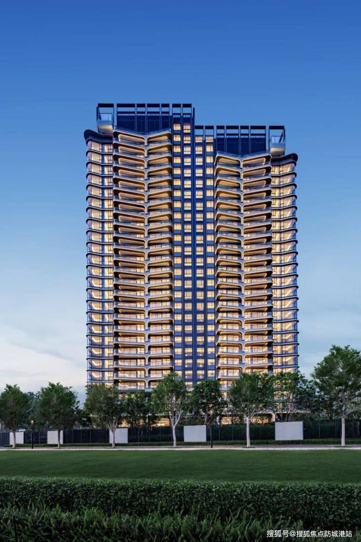 南天名苑的建筑立面设计取材于项目LOGO中的“家族树”意象,通过竖向线条模拟枝干生长形态,配合曲面LOW-E玻璃幕墙、铝板与石材的多材质拼接,形成具有层次感的视觉节奏。其中天启组团采用最大270°环幕窗设计,主卧视野借鉴游艇观景逻辑,将江面与城市天际线纳入同一画面。该项目外立面曾获德国设计奖及IPA国际房地产大奖(亚太区),其工艺复杂度体现在单栋建筑使用十余种材料与色彩搭接工艺,而非单纯依赖昂贵用料堆砌。