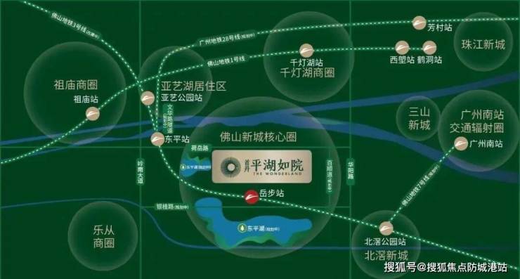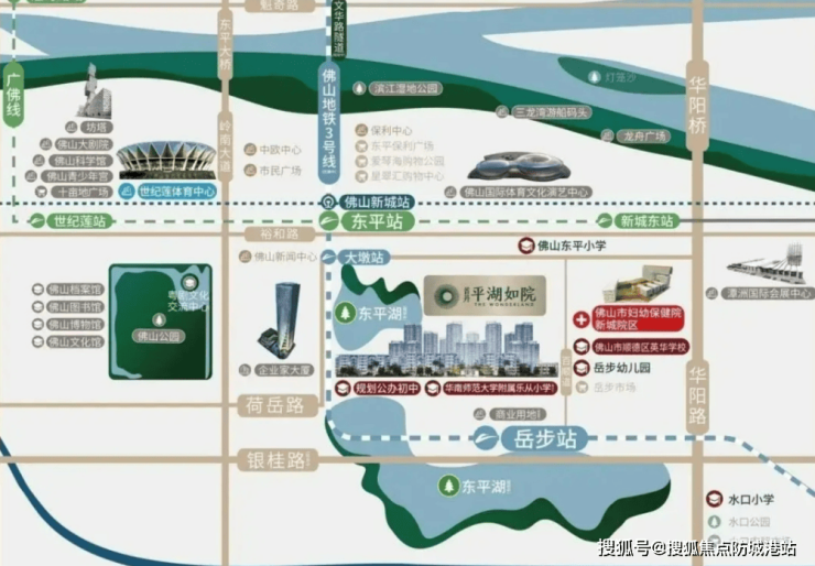 首开平湖如院周边交通便捷,项目覆盖三横五纵主干道,快速接驳华阳路、岭南大道、佛山大道、汾江南路及佛山一环,实现与周边商圈及城市核心区的高效连接。项目距离岳步站约300米,接驳佛山地铁3号线及规划中的14号线,2站即可到达东平站,进一步连接广佛线、广州地铁28号线及佛山地铁6号线(规划中),广佛环线在建中,可快速抵达千灯湖及广州荔湾、琶洲等区域。同时,项目通过快速路及规划桥梁可便捷通达禅城及乐从、北滘商圈,为上班族和经常出行的家庭提供高效通勤体验。区域交通优势不仅提升居住便利性,同时强化楼盘投资价值,使购房者能够在短时间内享受佛山新城及大湾区核心资源。