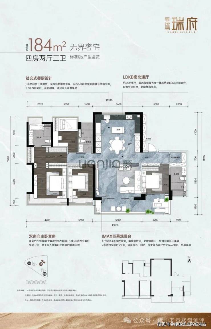 建面约184㎡的四房两厅三卫户型,则是项目的楼王产品。该户型采用2梯2户专梯专户设计,真正实现了“一梯一户”的尊贵体验。双主卧套房布局,避免了多代居住时的动线交叉,互不干扰。8.5米的南向阔景阳台,配合270°环幕江景视野,高楼层房源甚至能直望德胜河全景,将江景资源发挥到极致。这是终极改善家庭的理想之选,一步到位,尽享奢华。